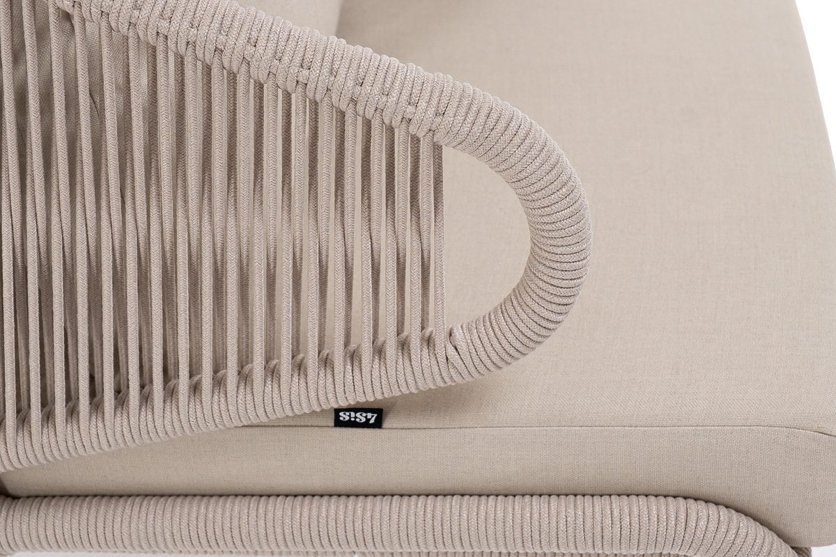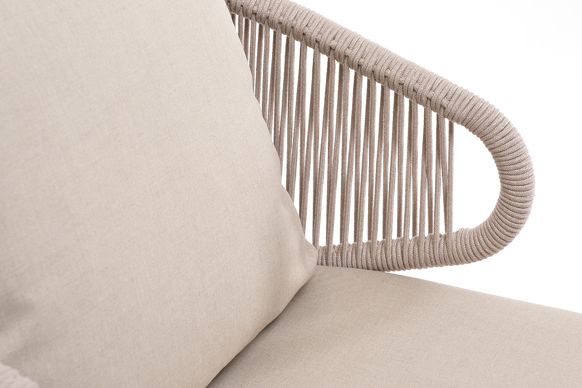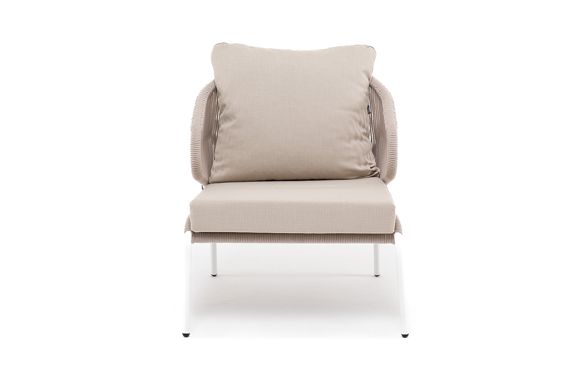 "Милан" кресло плетеное из роупа, каркас алюминий белый муар, роуп бежевый круглый, ткань бежевая 052