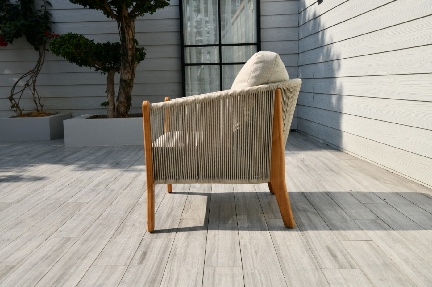 "Сидней" кресло плетеное из роупа, основание тик, каркас алюминий бежевый, роуп бежевый, ткань бежевая