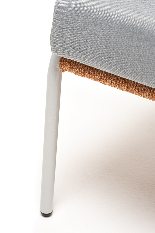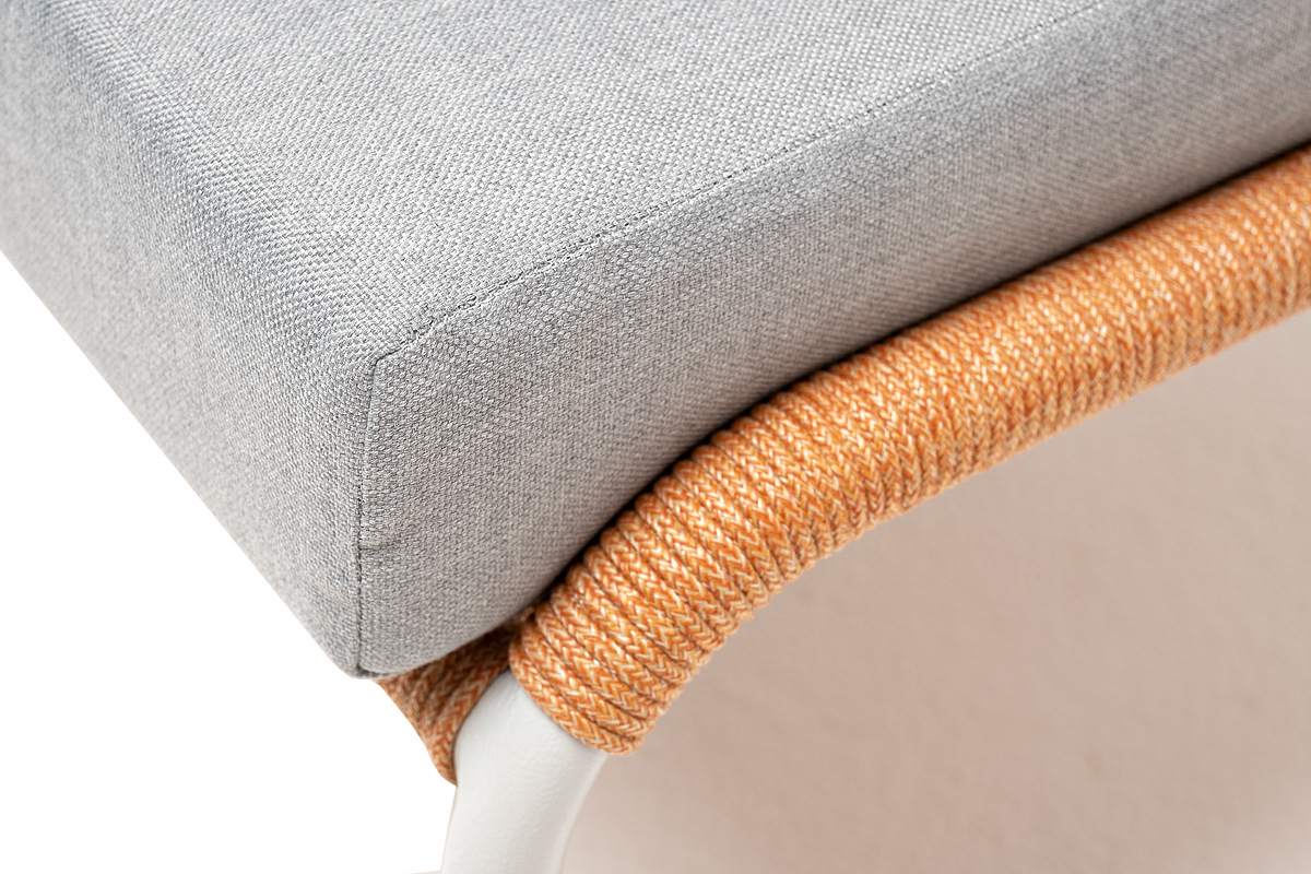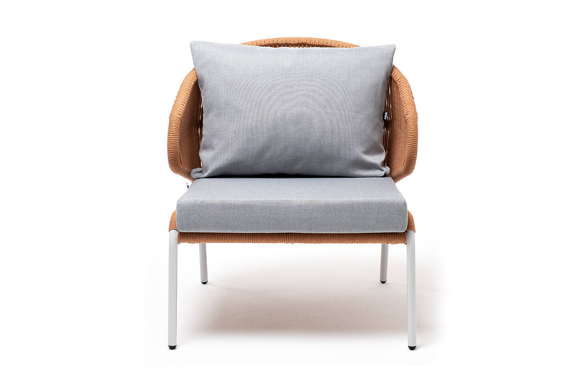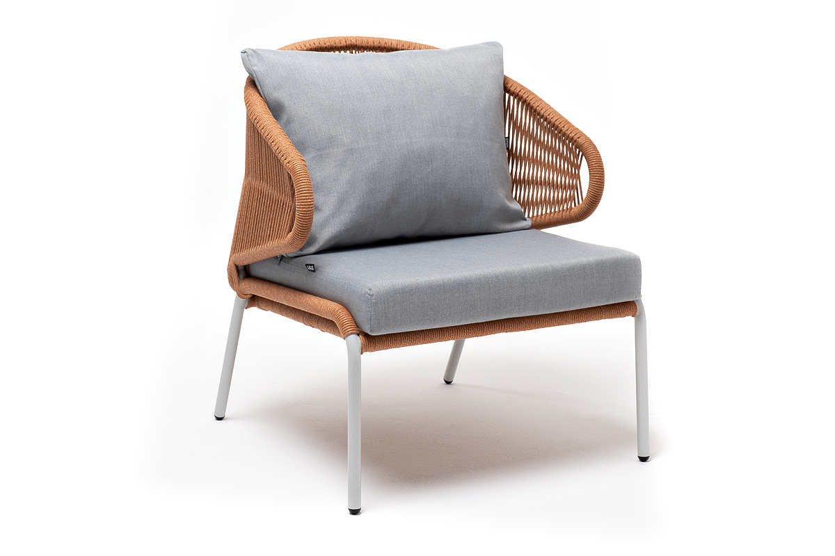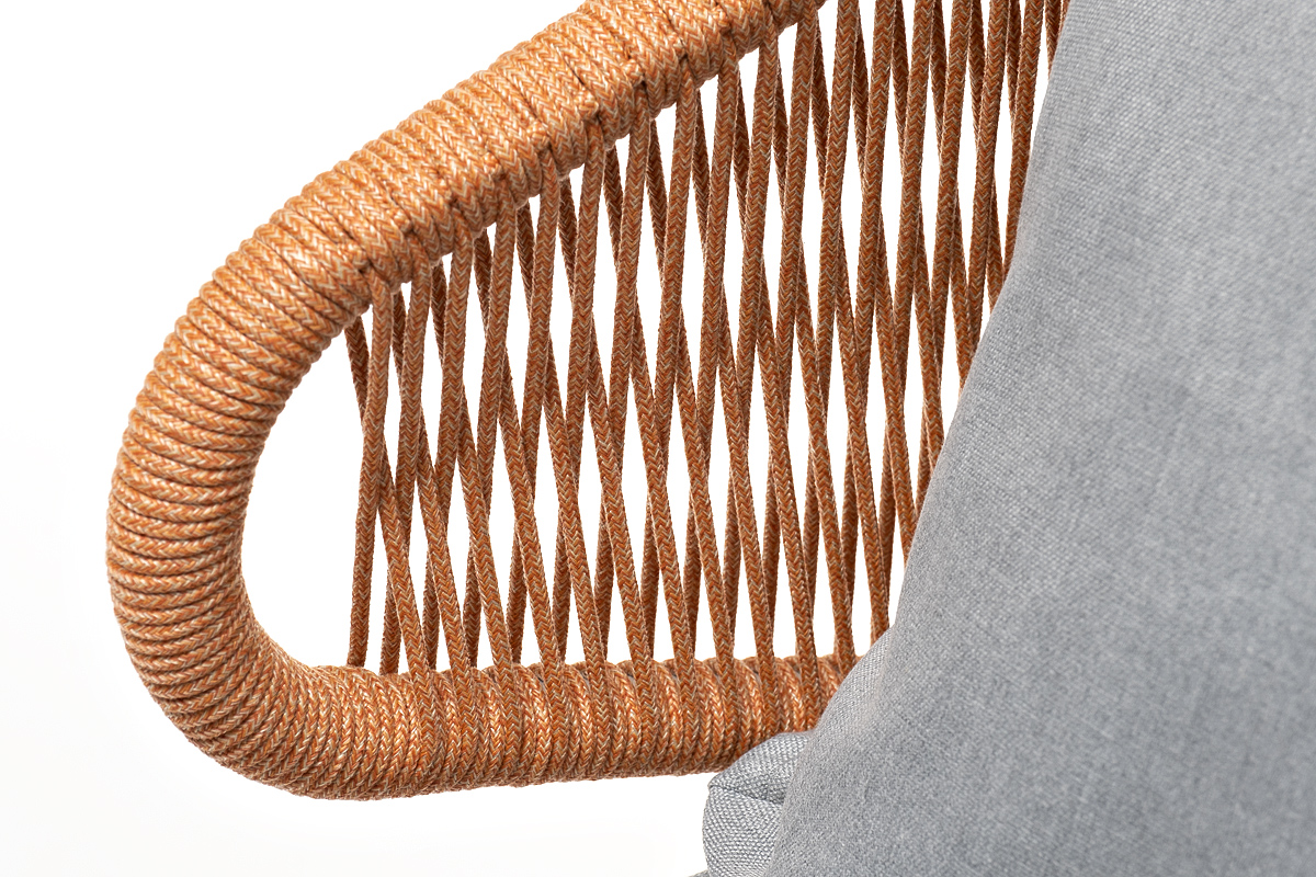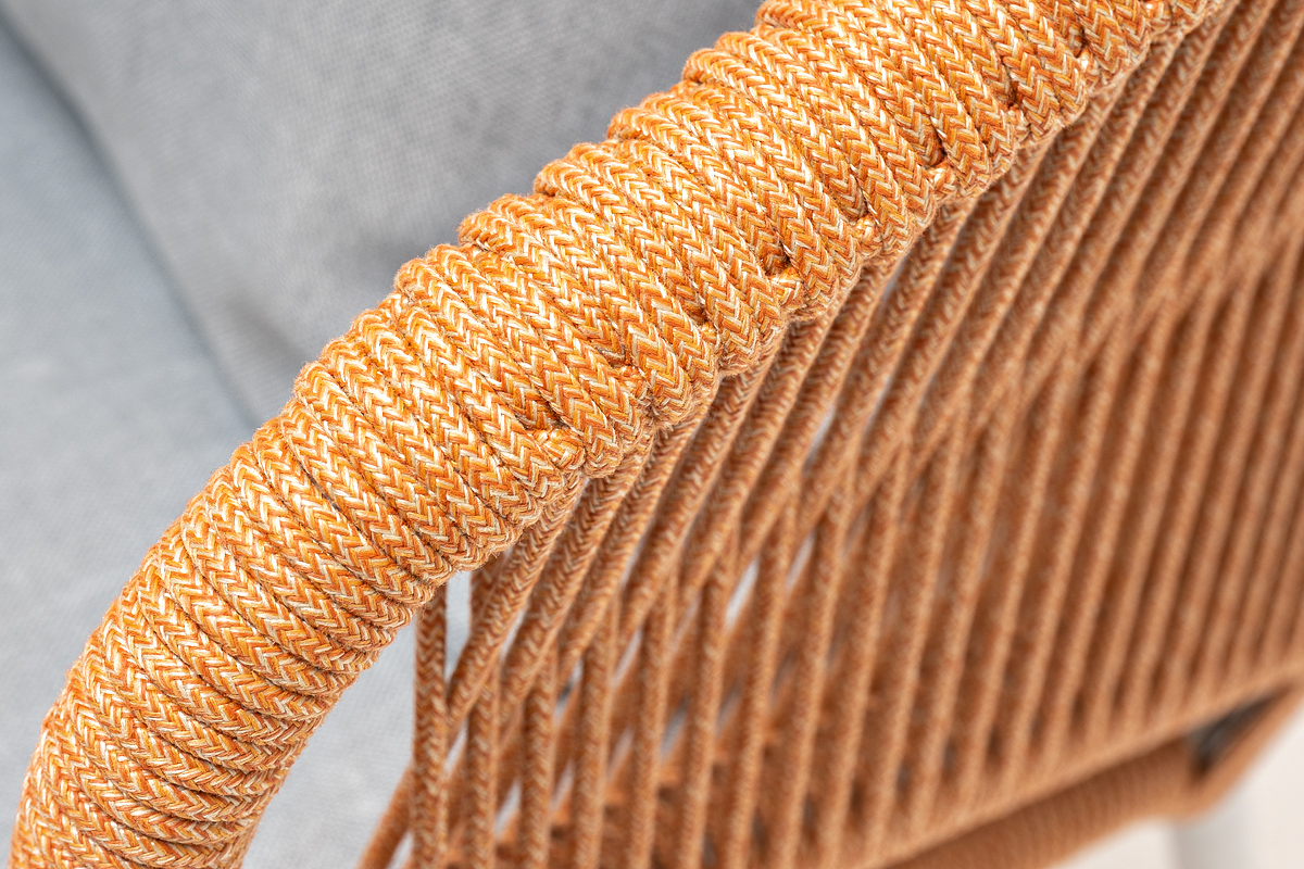 "Милан" кресло плетеное из роупа, каркас алюминий светло-серый (RAL7035) муар, роуп оранжевый меланж круглый, ткань светло-серая