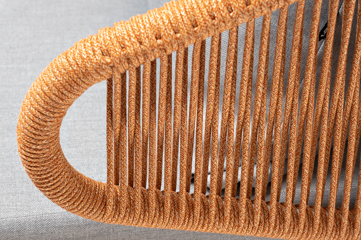 Изготовлен из алюминиевого каркаса, оплетенного вручную эластичными синтетическими лентами из высокопрочных полиэфирных волокон. Цвет каркаса - светло-серый (RAL7035), оплетки – оранжевый меланж.