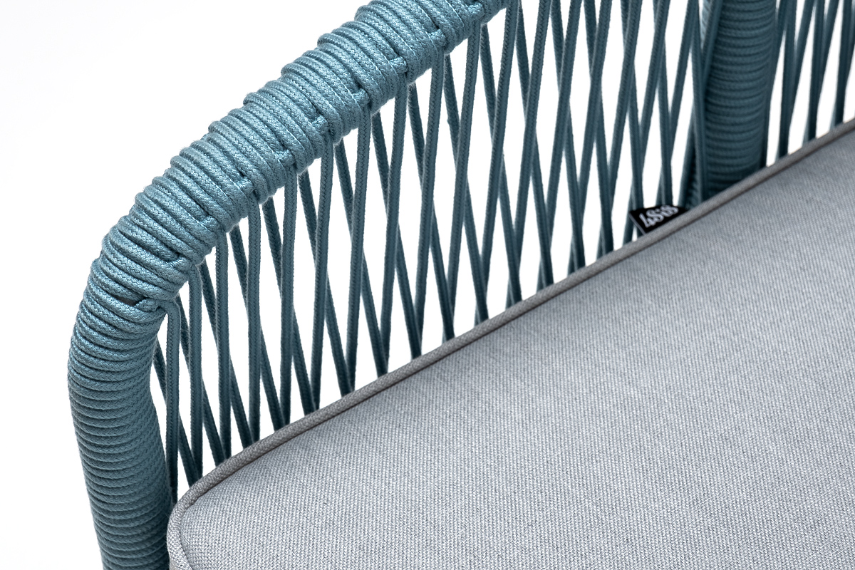 "Канны" кресло плетеное из роупа, каркас алюминий светло-серый (RAL7035) муар, роуп бирюзовый круглый, ткань светло-серая