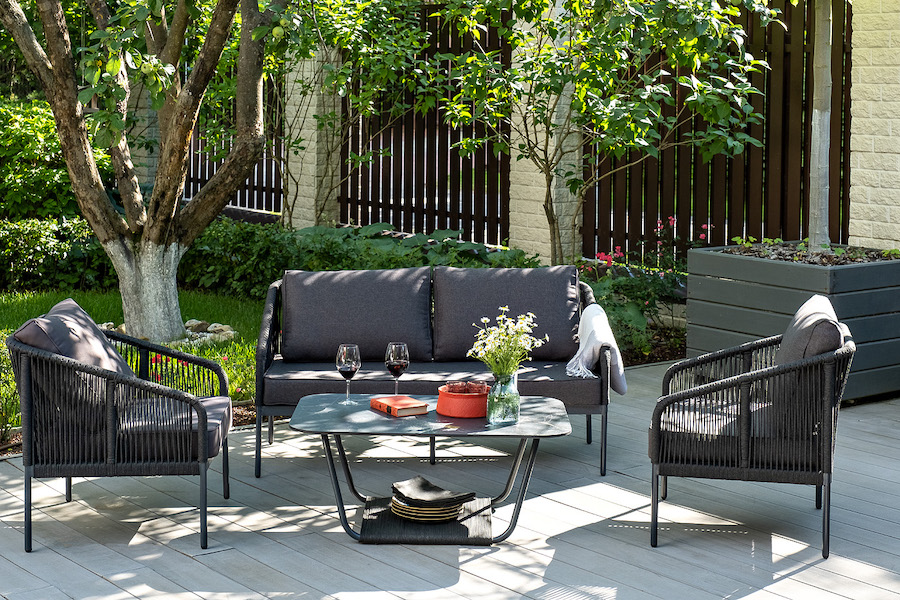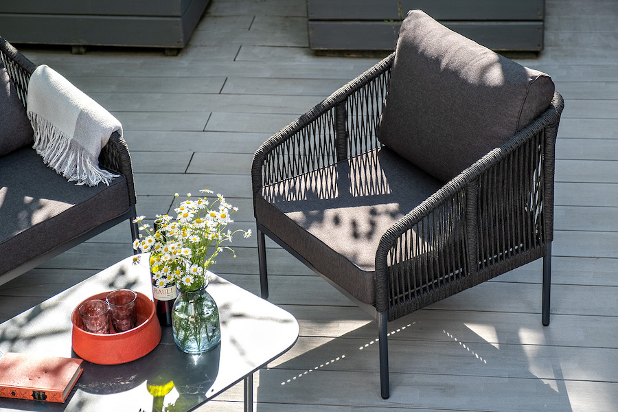 "Канны" лаунж-зона 4-местная плетеная из роупа (веревки), цвет темно-серый