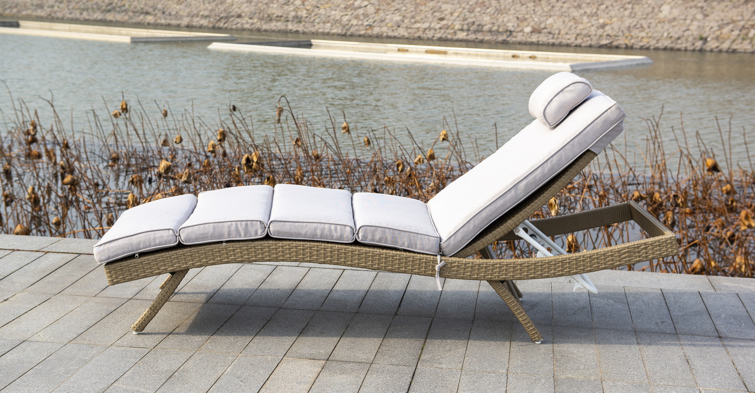 В комплекте прилагается матрас светло-серого цвета из водостойкой ткани.Мебель натуральных расцветок гармонично вписывается на пляже, в саду, на террасе.