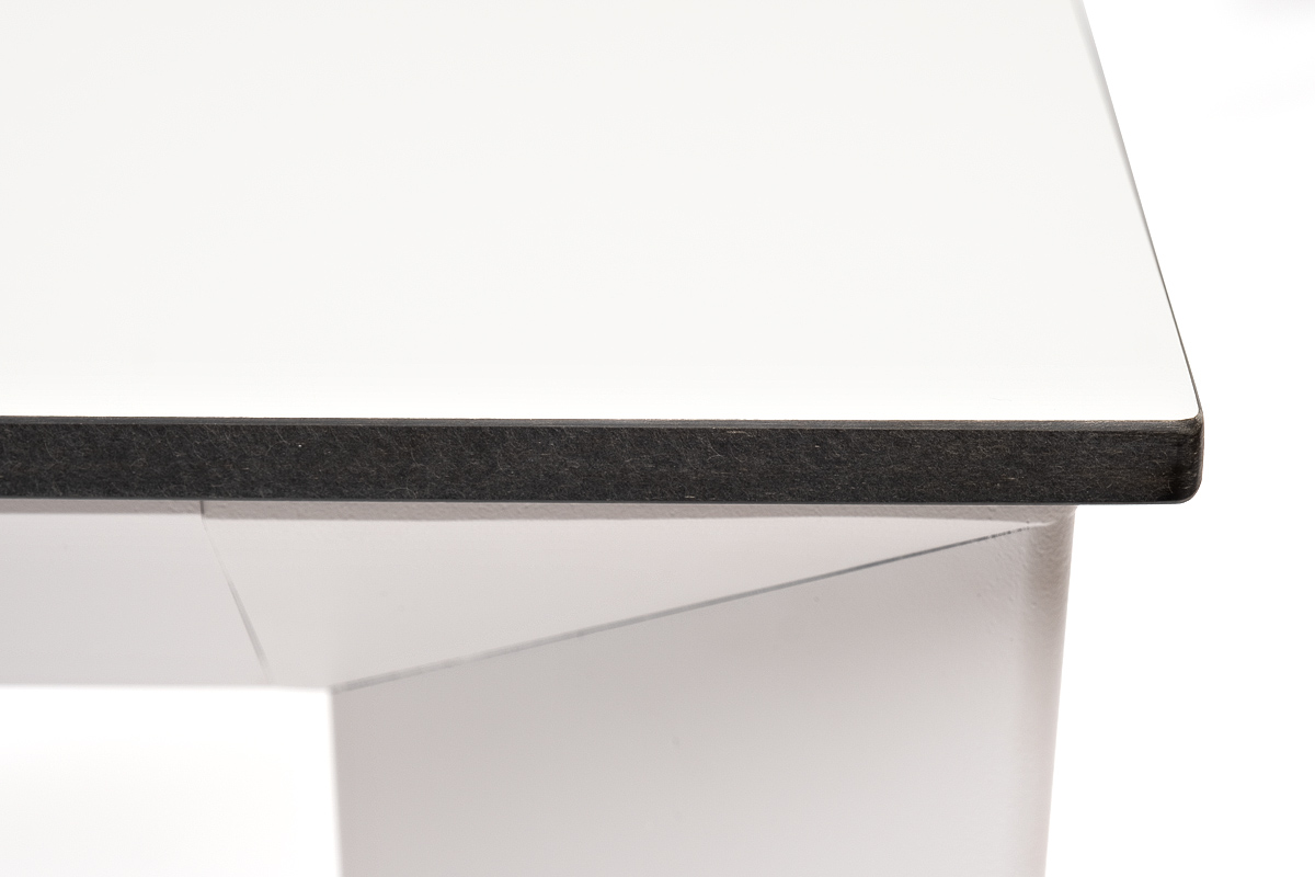 Столешница выполнена из современного высококачественного монолитного компакт-пластик HPL, толщиной 12 мм в цвете молочный. Материал устойчив к высоким температурам, попаданию влаги и может использоваться как в помещении, так и на открытом пространстве. Подстолье изготовлено из крашеного алюминия белого цвета.